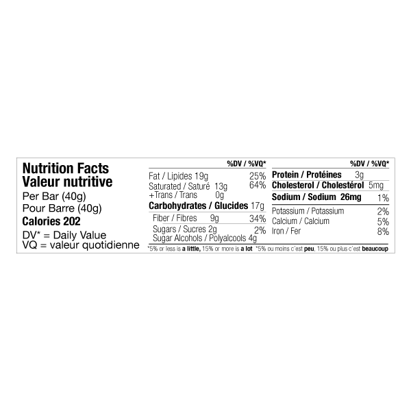 Contains/contient 7.7g of Polydextrose (dietary fibre) per serving/par portion